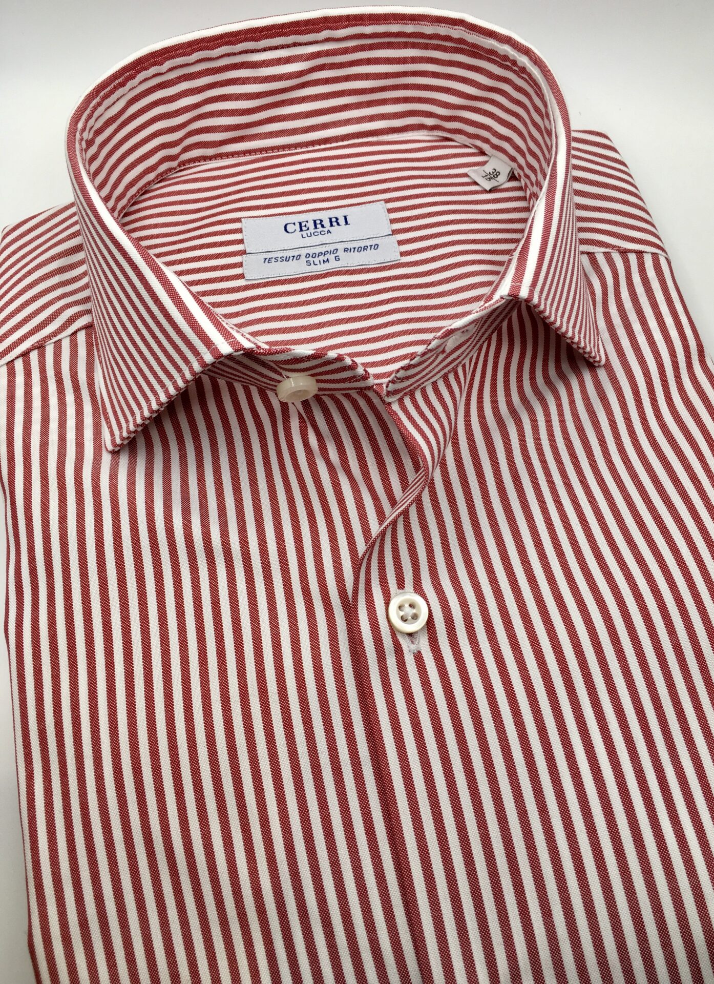 camicia riga rossa puro cotone panama doppio ritorto, slim fit.
